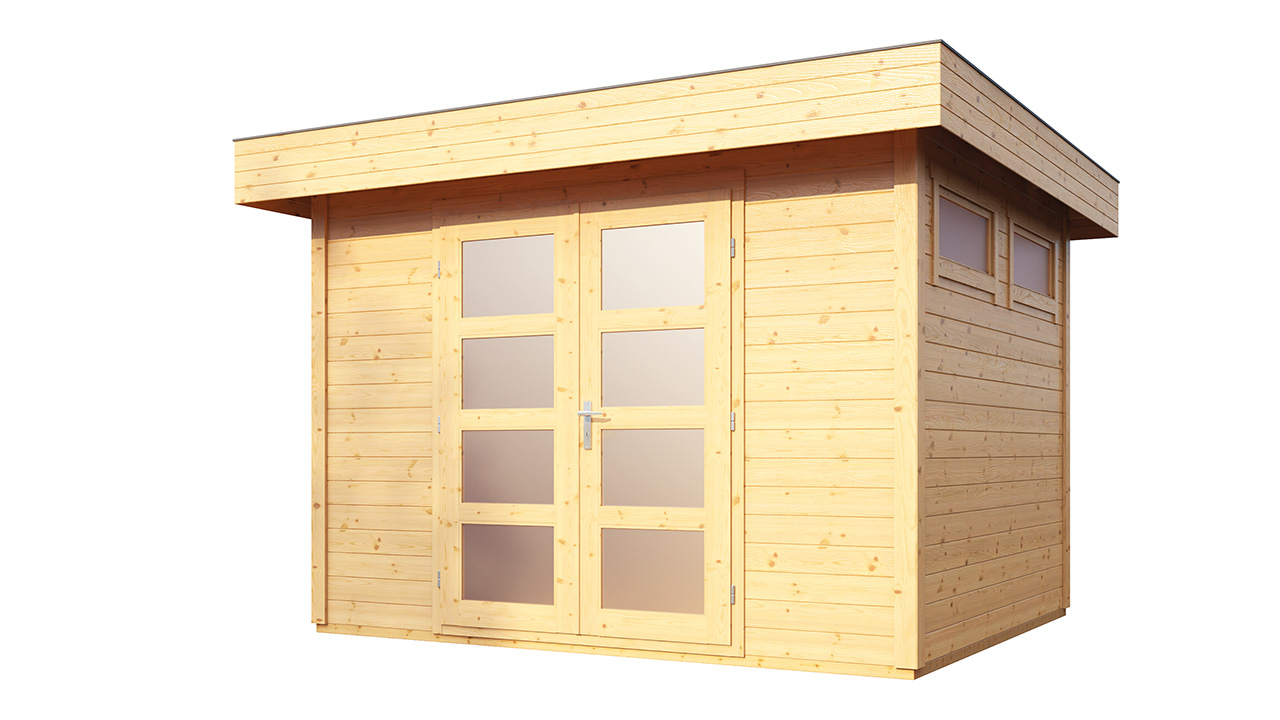 Dans sa taille compacte, l'abri de jardin "Varianta B" prend peu de place et offre quand même beaucoup d'espace de rangement pour les outils et les meubles de jardin grâce à sa haute structure.