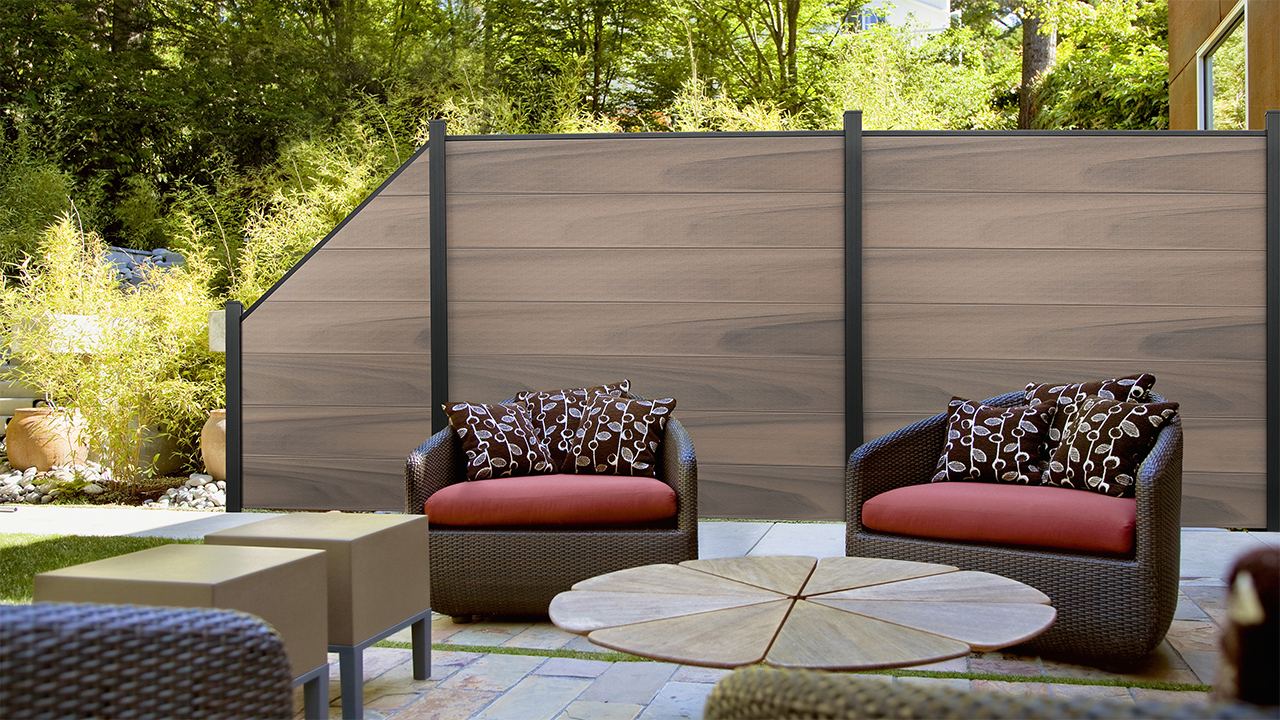Le matériau WPC/BPC est en partie composé de produits naturels (composite bois ou bambou-polymère). En raison de la matière première, la couleur ne peut pas être comparée à une teinte RAL et peut donc paraître légèrement brunâtre selon l'incidence de la lumière.