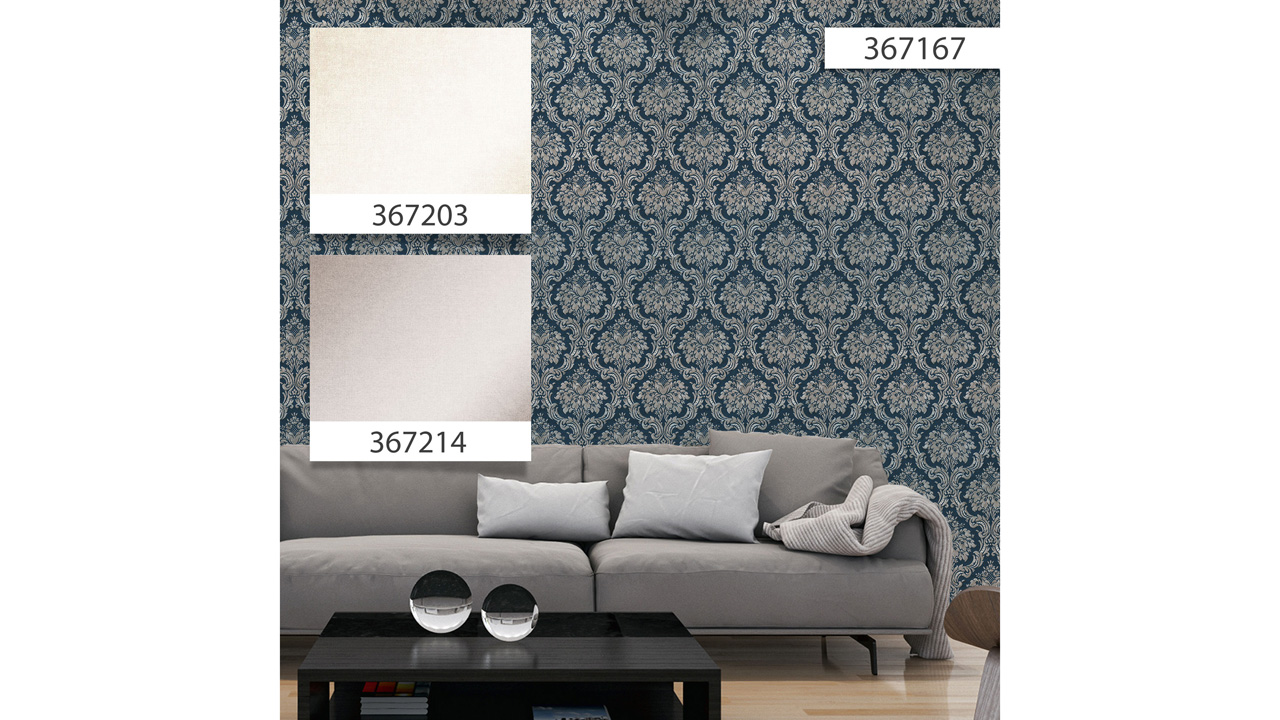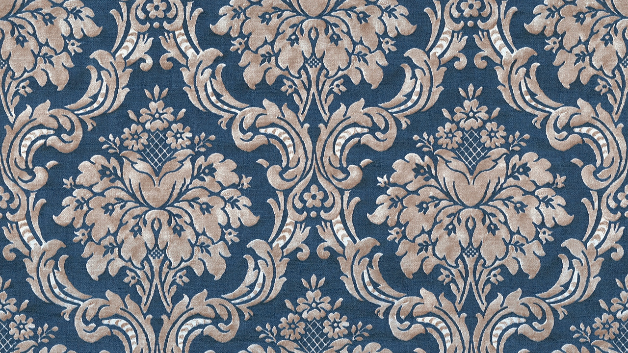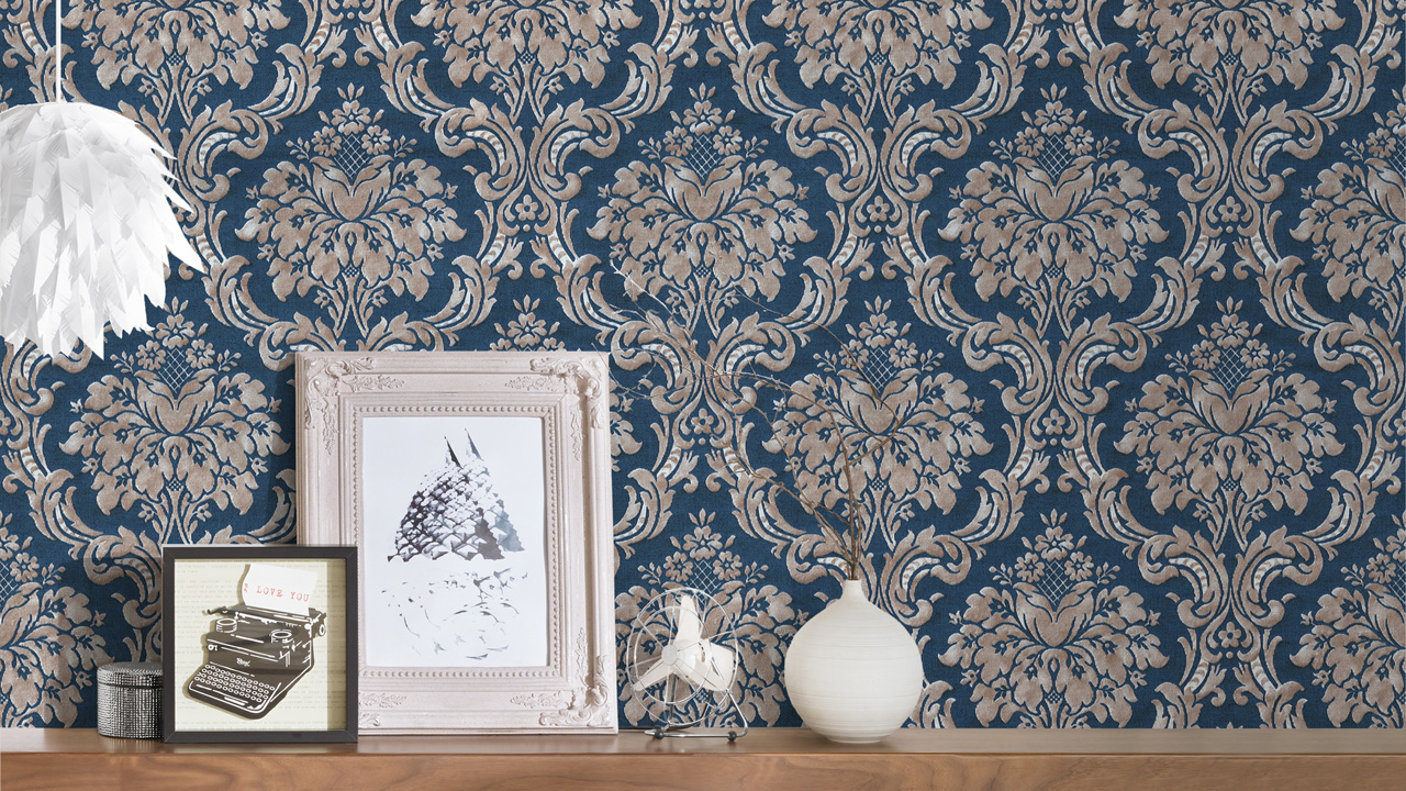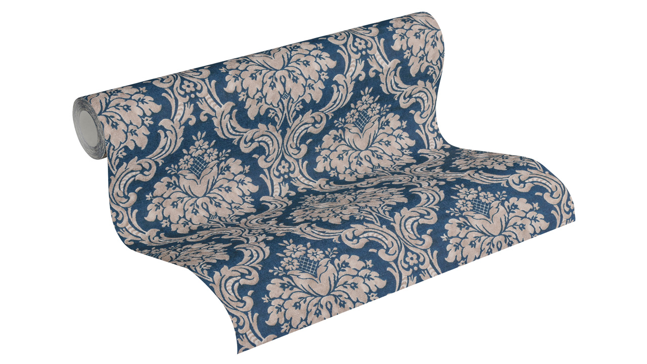 Papier peint en vinyle bleu rétro fleurs de campagne et ornements naturels Paradise Garden 167