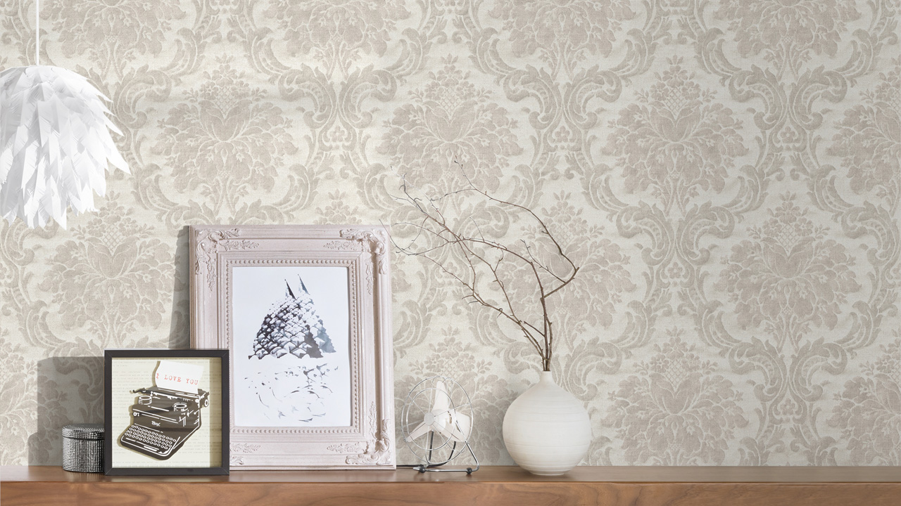 Papier peint en vinyle gris rétro fleurs de campagne & ornements de la nature Paradise Garden 161