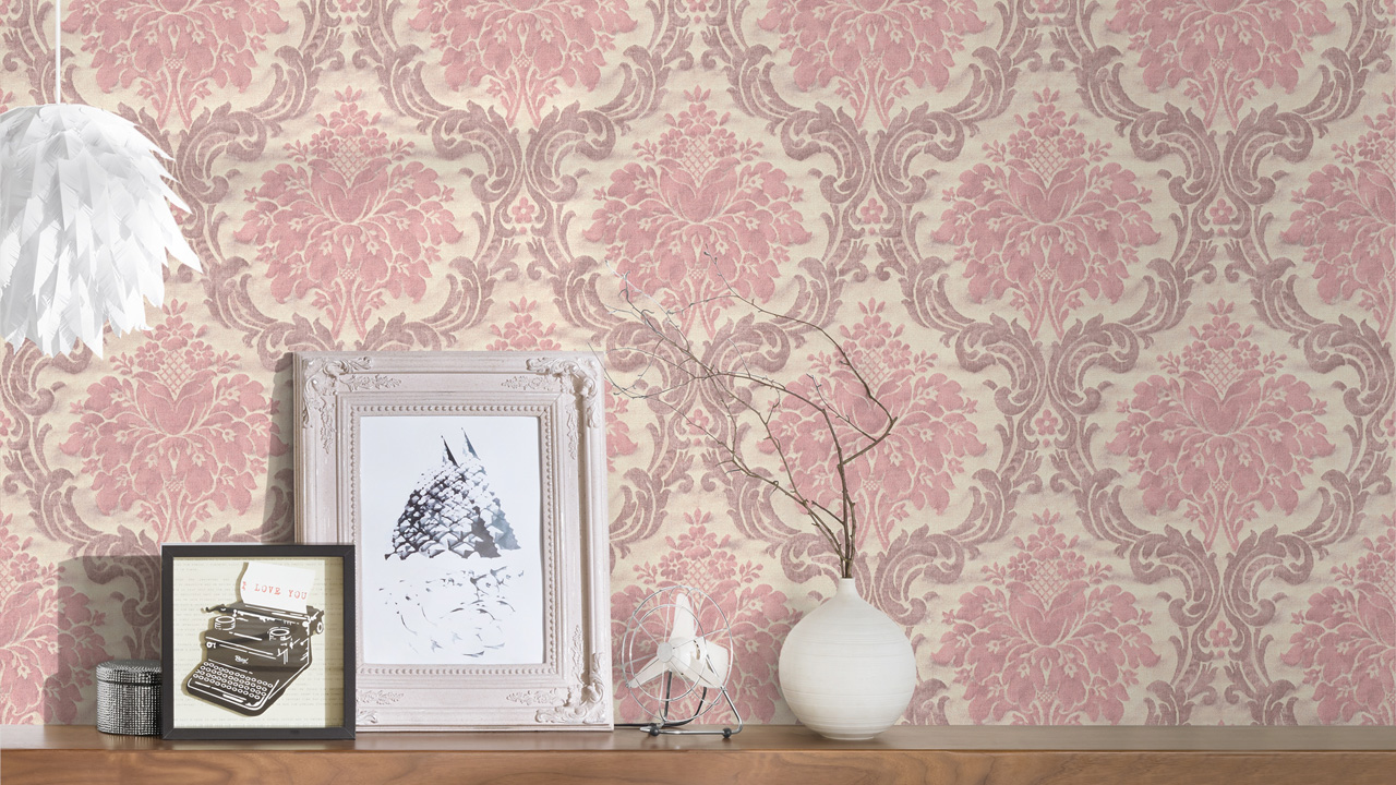 Papier peint en vinyle rose rétro fleurs de campagne & ornements de la nature Paradise Garden 162