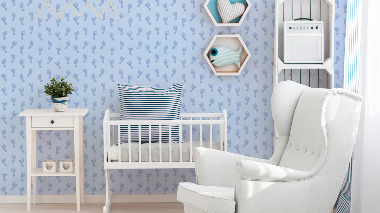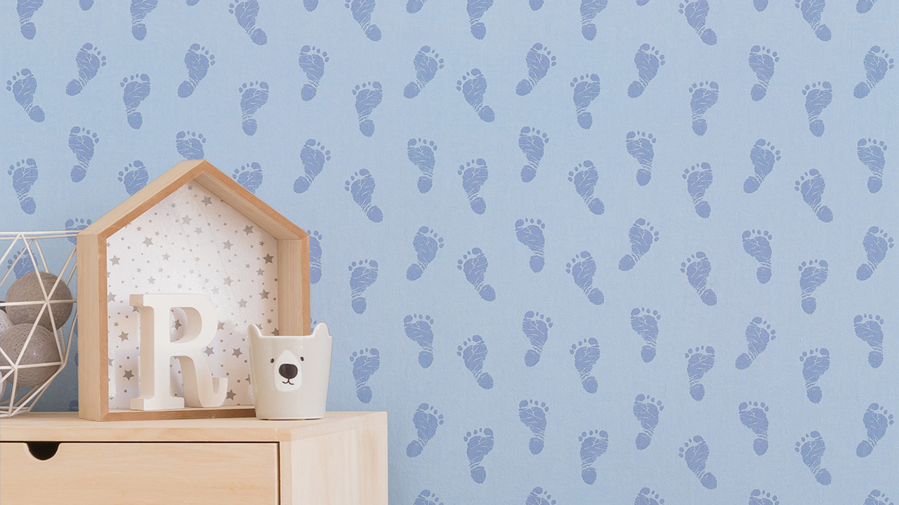 papier peint non tissé Little Stars A.S. Création papier peint pour enfants empreintes de bébés bleu métallique 632