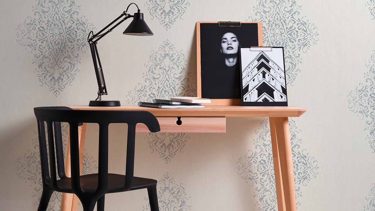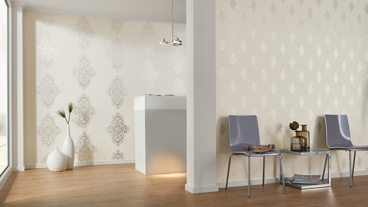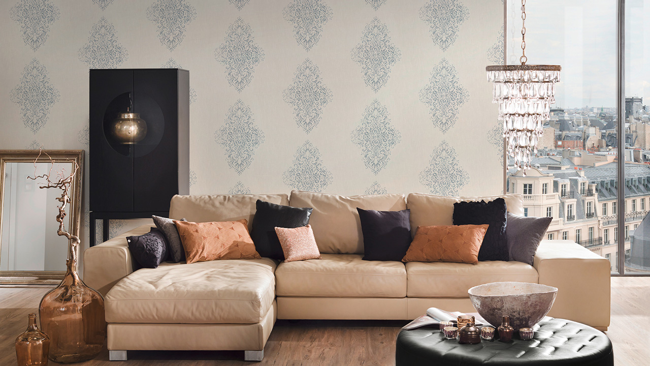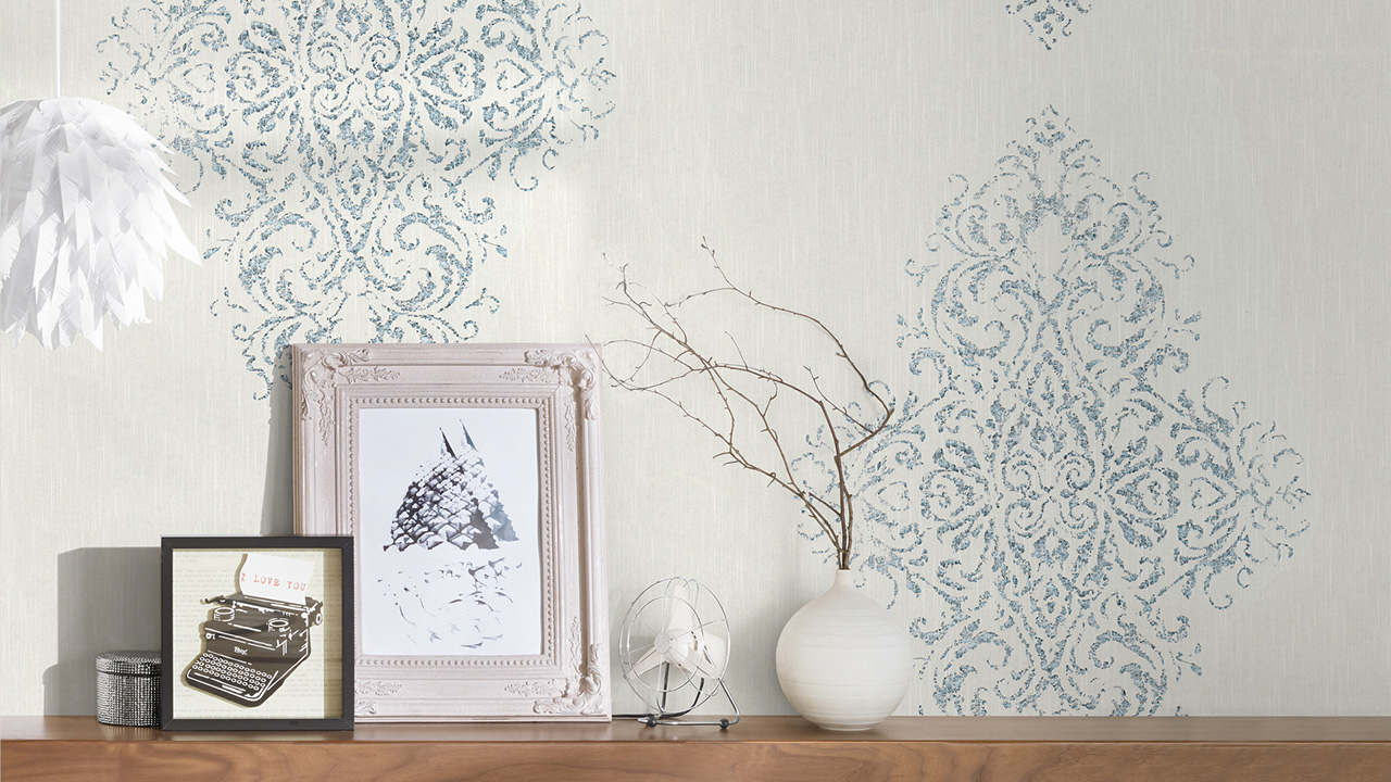 Papier peint textilePapier mural de luxePapier d'ornement Architectes Papier blanc bleu métallisé 451