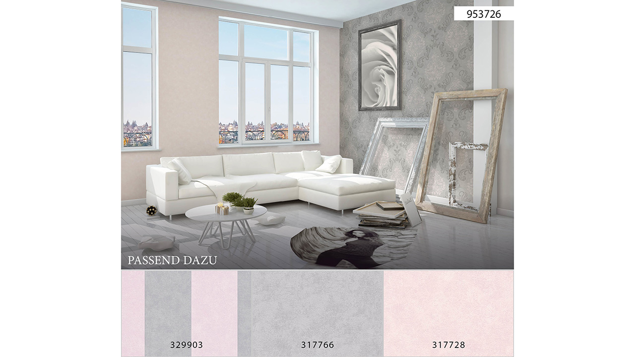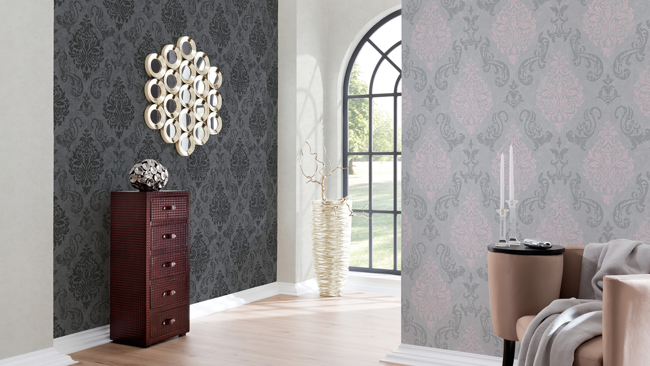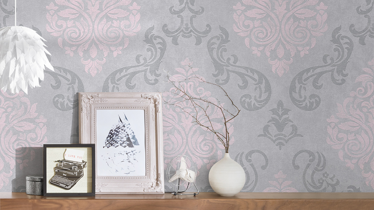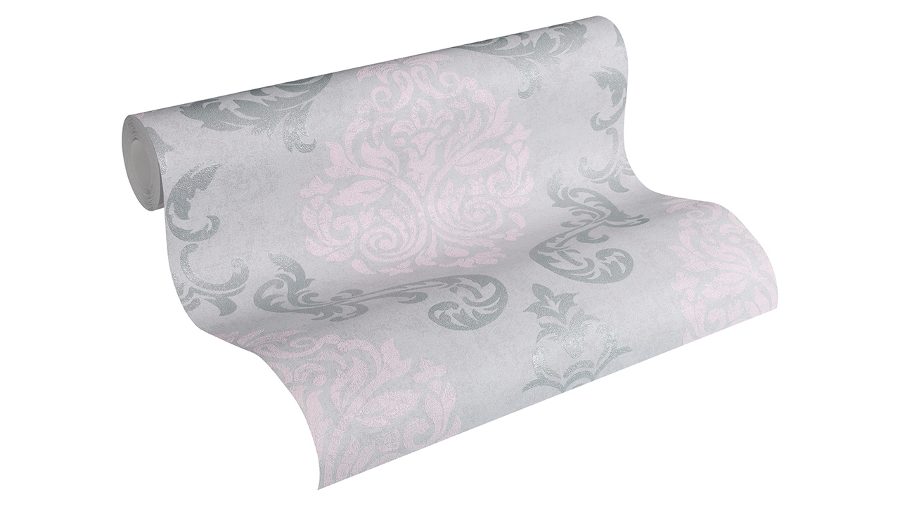 Papier peint vinyle mémoire 3 A.S. Création ornements gris rose métallisé 726