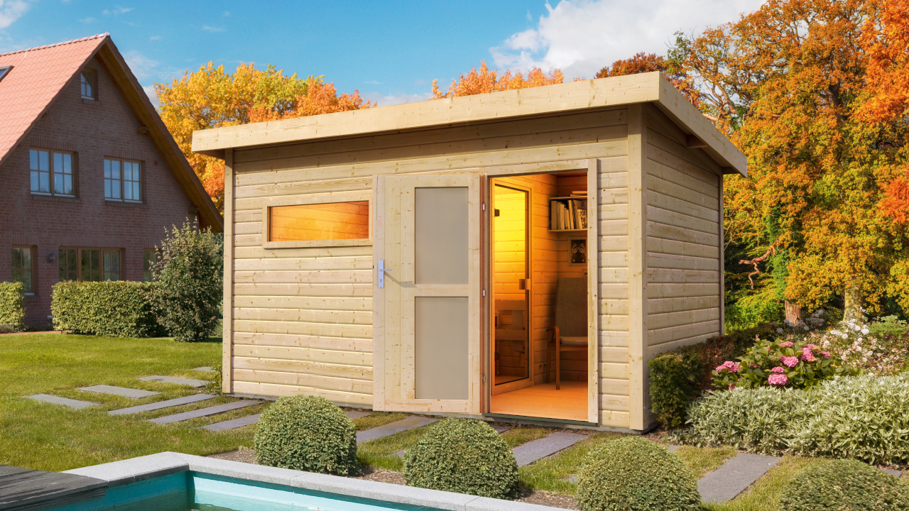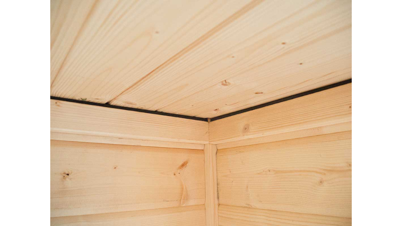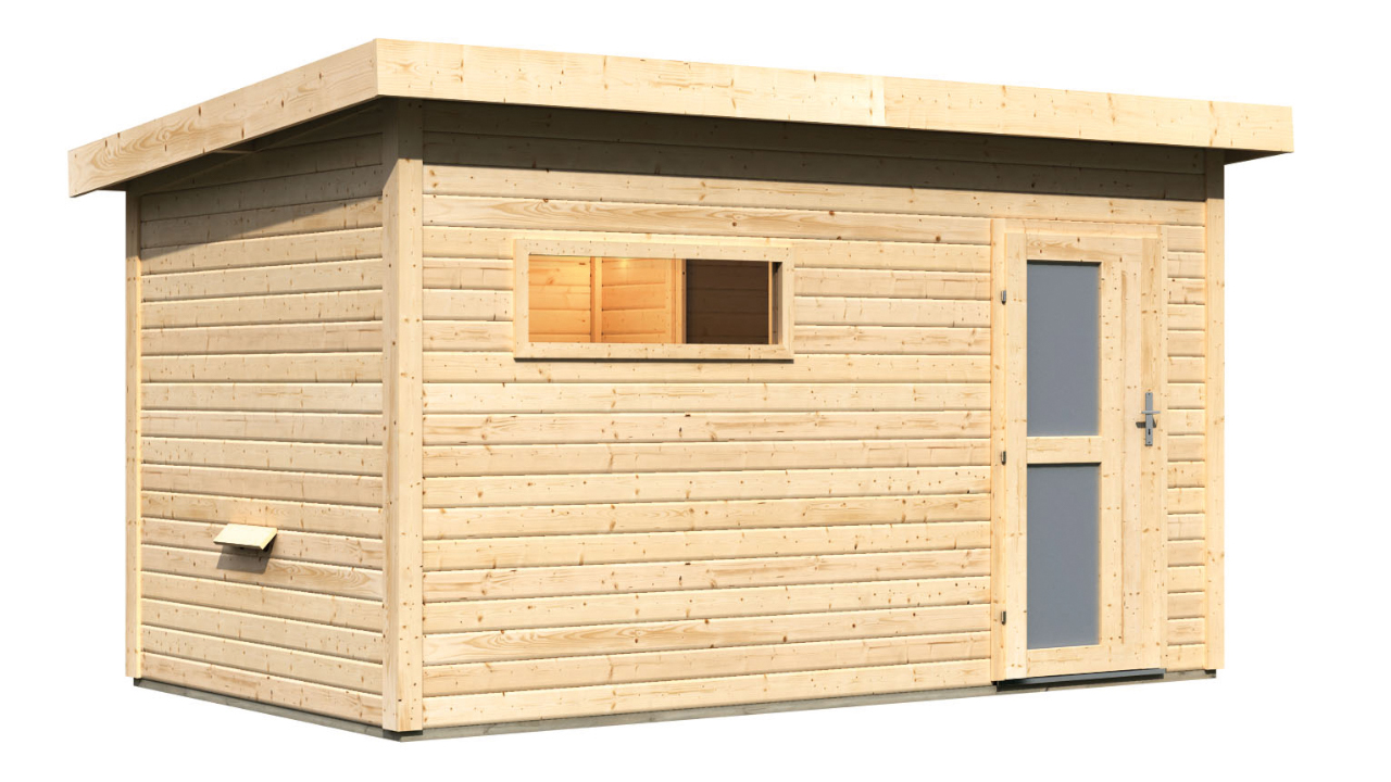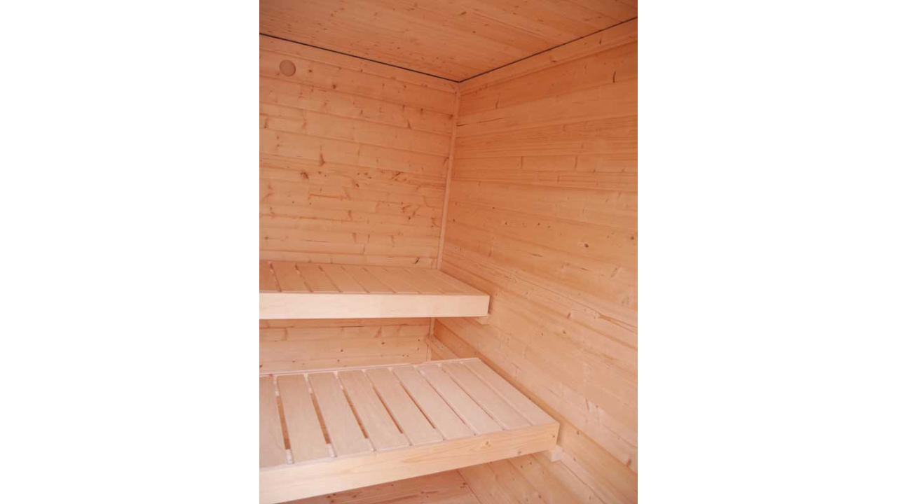 Avec le kit de sauna planeo, vous pouvez profiter de séances de sauna apaisantes, seul ou avec des amis, sur une surface de 5,3 m². Installez-vous confortablement sur les bancs en tremble sans nœuds et profitez d'une pièce lumineuse grâce à une porte vitrée en bois collé et à une fenêtre unique fixe. Une antichambre de 3,8m² assure la discrétion et sert parfaitement de zone de détente, de douche* ou de vestiaire.