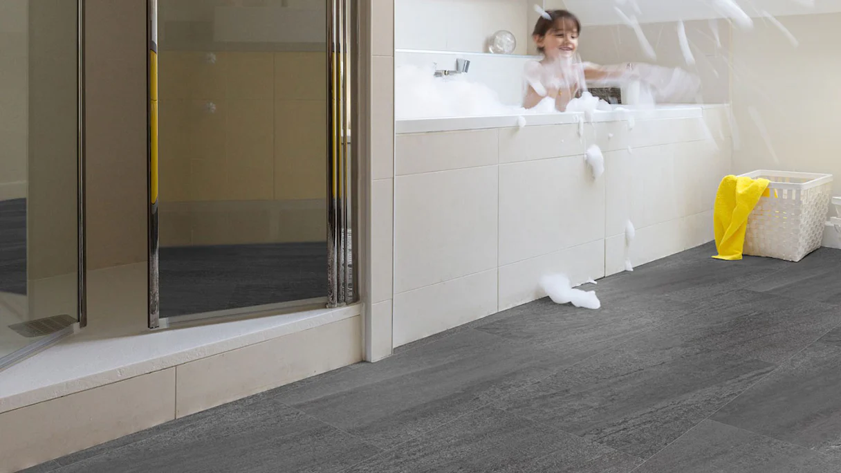 Le carreau de vinyle Nevada Dark à coller est de conception authentique et présente une surface tactile et des bords légèrement biseautés.