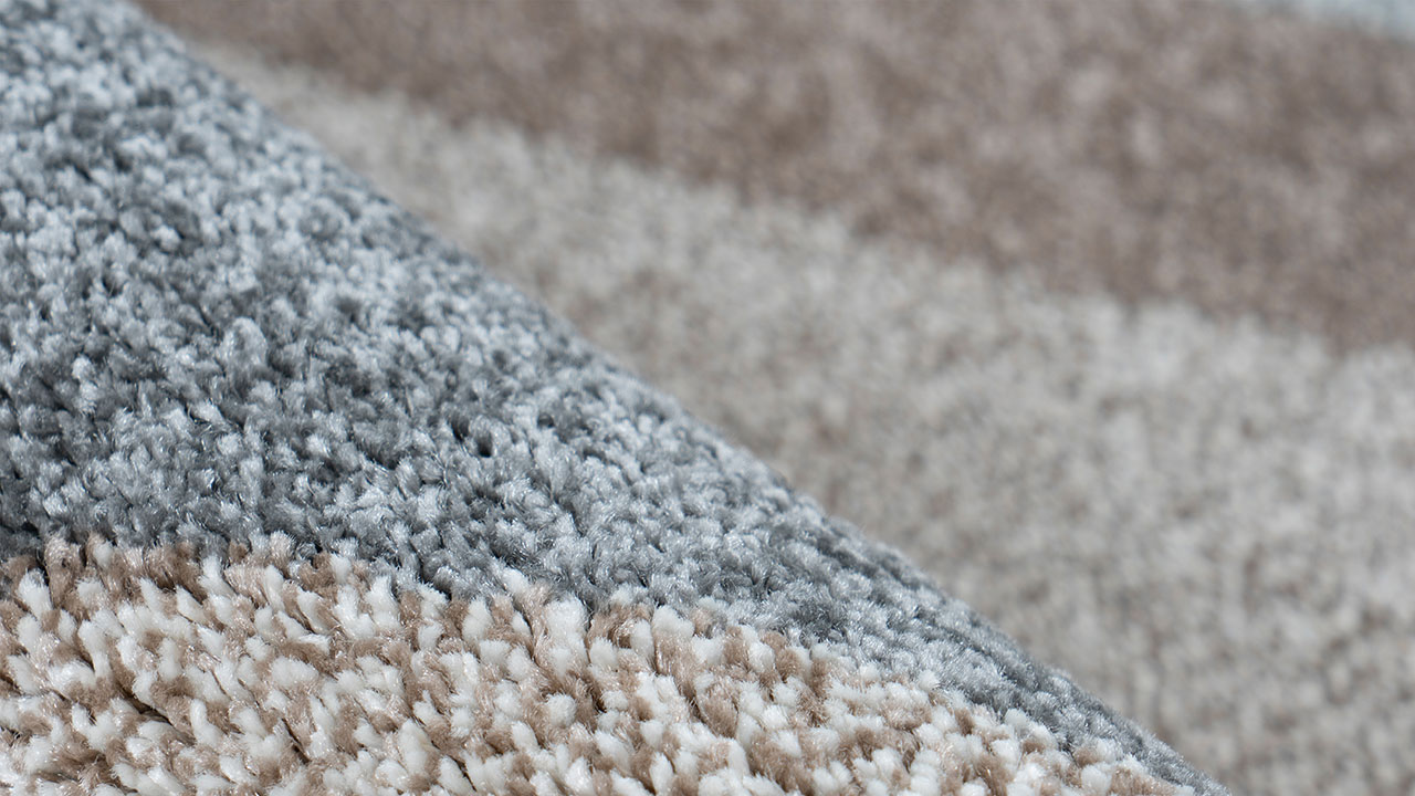 La pile est tissée de manière dense et a un effet 3D. Le procédé de frise heatset utilisé crée des hauteurs et des profondeurs dans les poils de la moquette qui donnent l'aspect 3D. Cette présentation est également une expérience haptique, car les différentes hauteurs sont assez palpables. Le dessous du tapis est renforcé par un support en jute. Dans les chambres avec chauffage au sol, la moquette peut être utilisée sans problème.