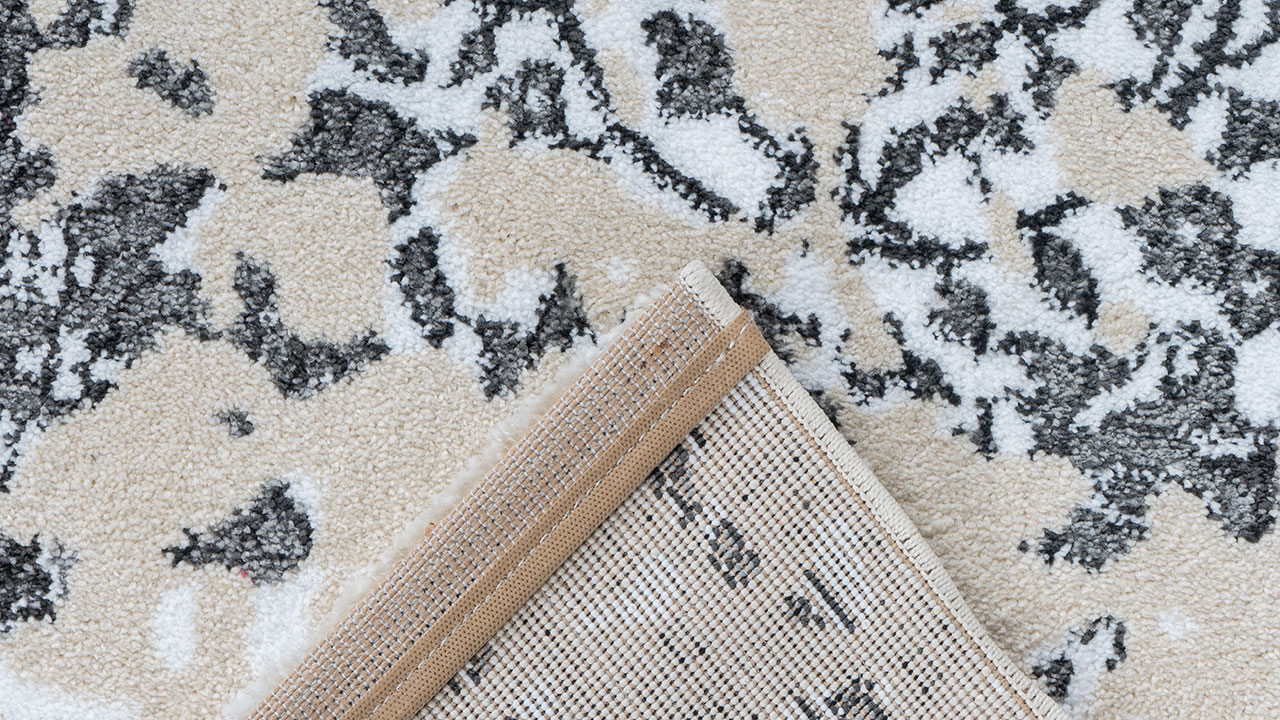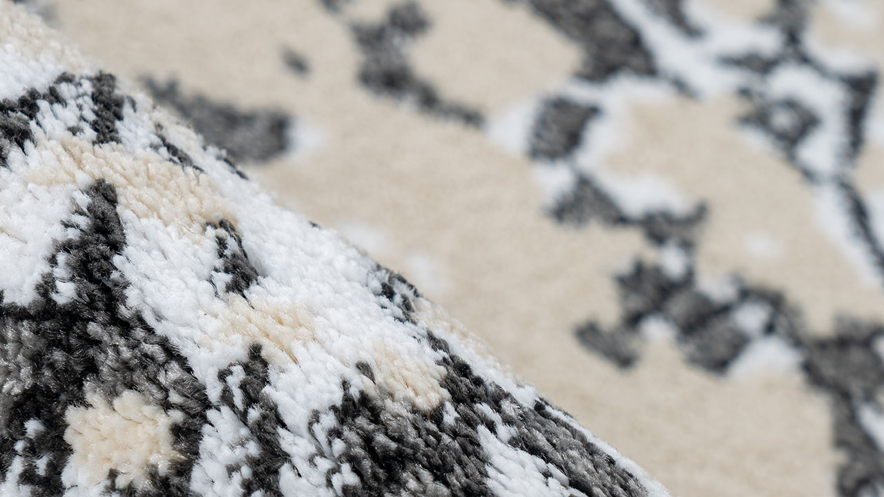 La pile est tissée de manière dense et a un effet 3D. Le procédé de frisée heatset utilisé crée des hauteurs et des profondeurs dans les poils de la moquette qui créent l'aspect 3D. Cette présentation est également une expérience haptique, car les différentes hauteurs sont assez palpables. Le dessous du tapis est renforcé par un support en jute. Dans les chambres avec chauffage au sol, la moquette peut être utilisée sans problème.