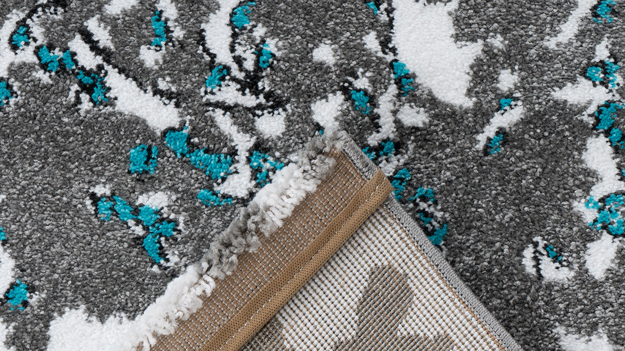 La pile est tissée de manière dense et a un effet 3D. Le procédé de thermofixation appliqué crée des hauts et des bas dans le velours de la moquette, créant ainsi l'aspect 3D. Cette conception est également une expérience haptique, car les différentes hauteurs peuvent être ressenties. Le dessous du tapis est renforcé par un support en jute. Dans les chambres avec chauffage par le sol, la moquette peut être utilisée sans problème.