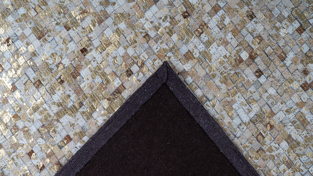 Ce modèle de tapis présente quelques caractéristiques positives. La pile a été amoureusement assemblée à la main à partir de nombreuses petites pièces carrées et est unique en son genre. Des pièces de cuir naturel de différentes teintes créent un motif de patchwork sophistiqué qui attire rapidement l'attention dans la pièce. Les effets métalliques donnent au tapis naturel avec fourrure un aspect individuel et moderne qui peut être combiné avec différents styles d'ameublement. Les accessoires de maison en cuir ou autres matériaux naturels ainsi que les couleurs naturelles s'harmonisent particulièrement bien avec le tapis en cuir.