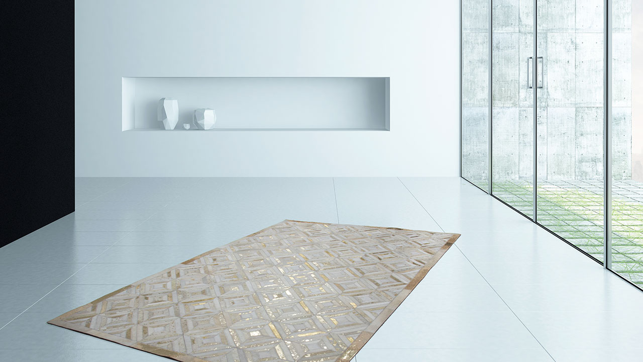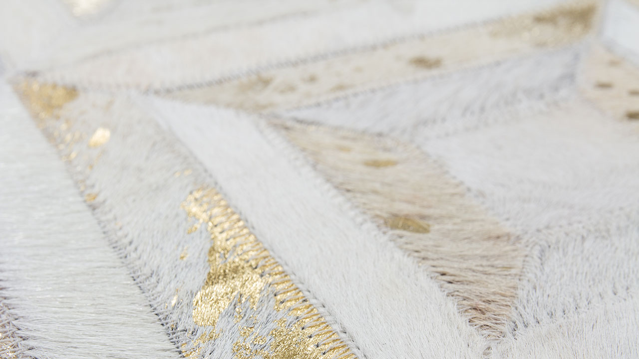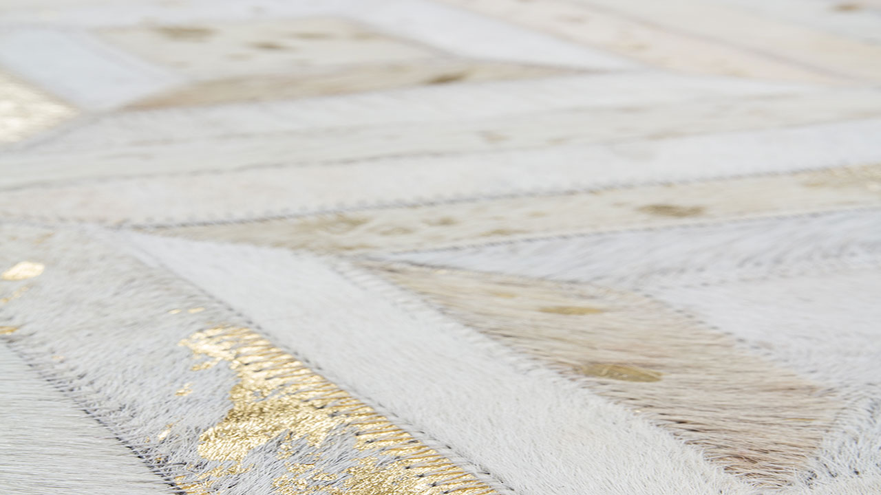 Le beau tapis en cuir avec des applications de feuilles métalliques intégrées complète habilement tout style d'intérieur noble. Le tapis noble de haute qualité en 100% cuir transmet une touche individuelle à son environnement et crée une atmosphère très particulière. Fabriqué à la main, chaque tapis en cuir est unique. L'utilisation de matériaux naturels nobles et la haute qualité du travail garantissent un aspect dynamique et rendent chaque tapis unique, car avec les produits naturels, il peut y avoir des écarts allant jusqu'à 30 % dans la forme, la couleur et le motif. La fourrure naturelle peut perdre des poils après un certain temps et avec un usage intensif, si nécessaire. De même, la feuille métallique pourrait se détacher dans certaines circonstances. Cela est dû au produit naturel et à la nature de la fourrure et ne constitue pas un défaut de fabrication.